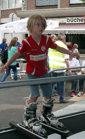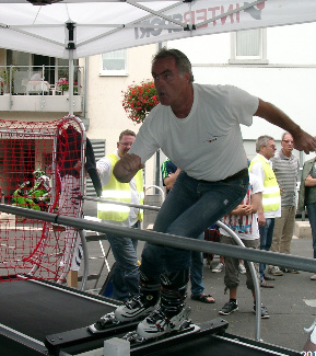 Der Sportbund Rheinhessen und die Stadt Bingen haben alle Einwohner zu einem Sporterlebnistag in der Binger Innenstadt eingeladen. Wir haben den Auftritt des Rhein-Hessischen Skiverbandes und des Skiclubs Bingen mit unserem Gerät unterstützt. Unser Skisimulator wurde zusammen mit Oldtimer-Fahrzeugen und Einradfahrern als Höhepunkt des Tages bezeichnet. In der kurzen Veranstaltungszeit sind auf dem Gerät "alte Hasen", Nachwuchs und sogar Profis gefahren. Alle fanden das Gerät einfach spektakulär. Unter dem Link http://sportbund-rheinhessen.de/sporterlebnistag-2013-in-bingen/ können sie den Bericht auf der Internetseite des Sportbundes Rheinhessen nachlesen. Leider hat das Wetter nicht mitgespielt. An dieser Stelle bedanken wir uns nochmal bei allen angagierten Helfern, die uns beim Abbau trotz Regen mitgeholfen haben.