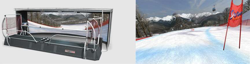 Die neuen Maschinen von SkyTechSport beinhalten leistungsfähige Antriebe, um die abfahrts g-Kräfte sowie intensive Vibrationen und Kompressionseffekte mit einem Lastäquivalent von bis zu 150 kg genau zu simulieren. Dutzende Sensoren lesen alle Bewegungen der Skifahrer aus und ermöglichen es die Sinneseindrücke exakt zu reproduzieren.
